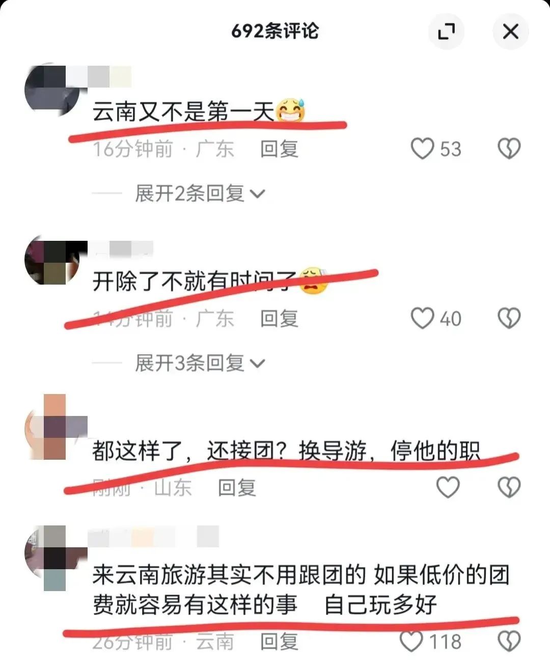 我想这次的云南旅游跟团事件,广大网友不仅仅是气愤在导游的强制购买,更是气氛在旅行社和当地文旅的回复上面。