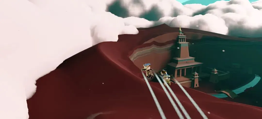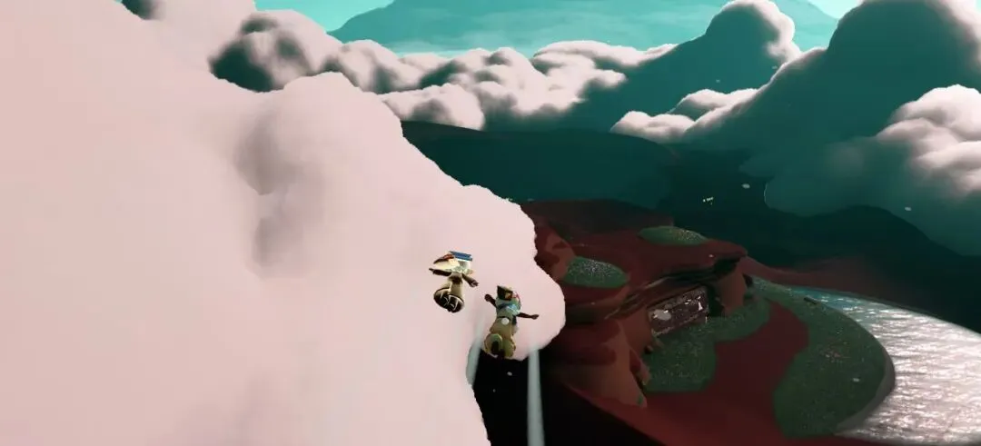 然后双面湖的另一侧的话,咱可低空过去,双面湖那个高度有很多风墙可能给你弹飞。
