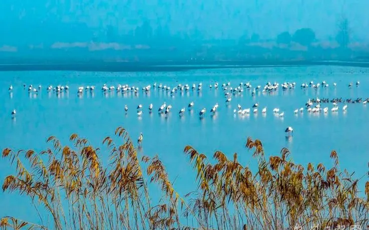 每年冬天十一月到次年三月,湖面会聚集十几万只候鸟,场面壮观到你觉得这不像是现代社会还能保留下来的景象,但它就在那儿,踏踏实实地存在着。