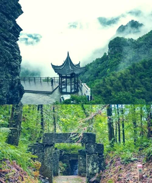 峡谷深处有几个瀑布,落差都不小,水声震耳,但你站在瀑布下面不会觉得吵,反而觉得安静,因为那种声音是自然的声音,不像城市里的噪音让人烦躁。山上还有一些道观遗址,都荒废了,但你看那些遗址的位置就知道,古人选址是讲究的,都选在视野开阔、水源充足、地势稳固的地方,这种智慧是现代人很多时候都没有的。