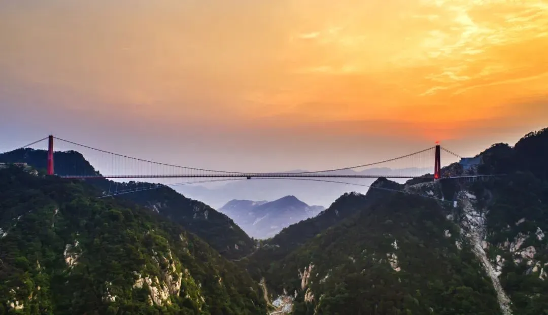 玻璃桥横跨两座山峰,凌空而起