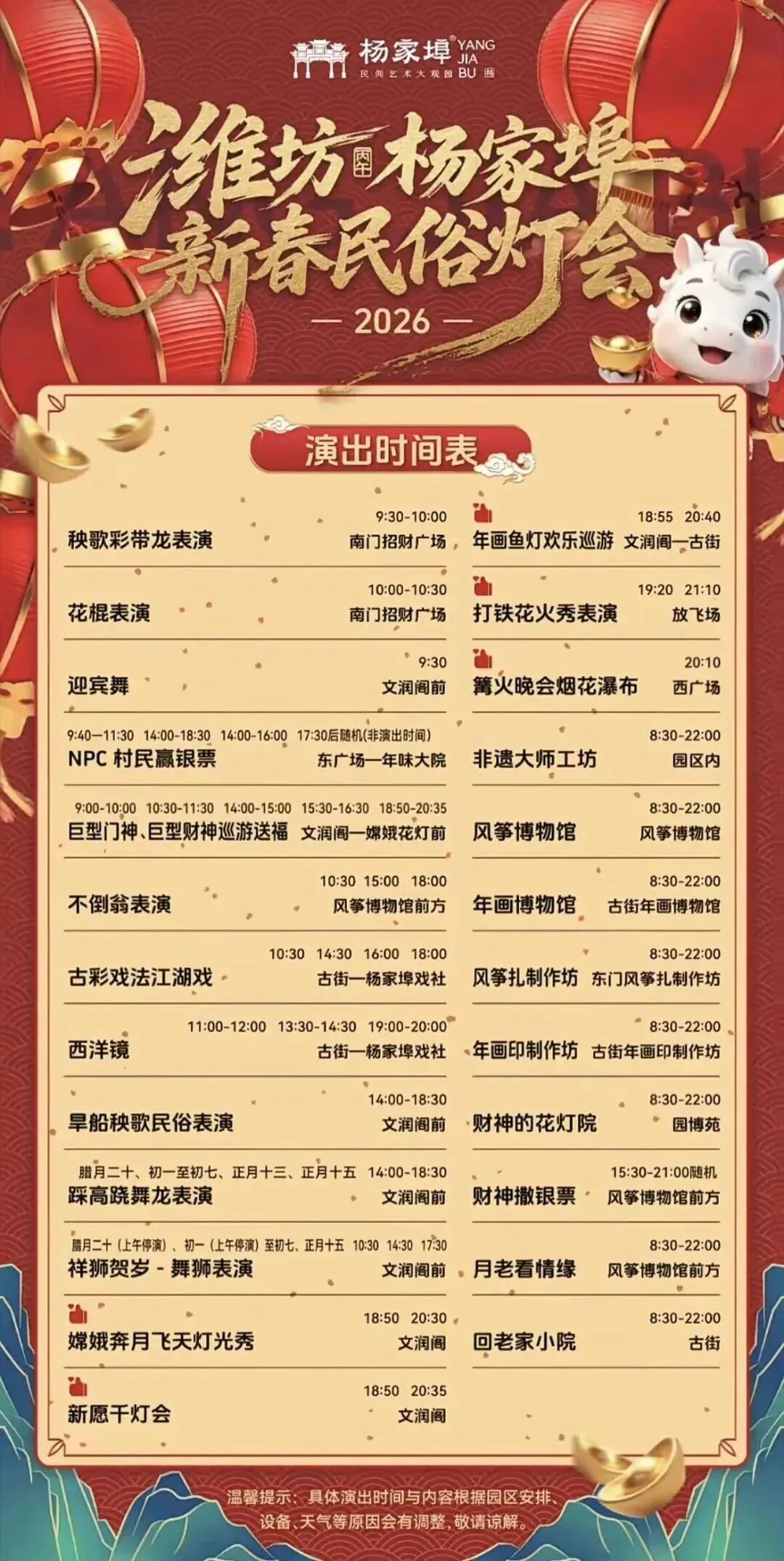 一、部分民俗表演、景区活动时间可能因天气、客流微调,建议出行前关注官方最新通知;