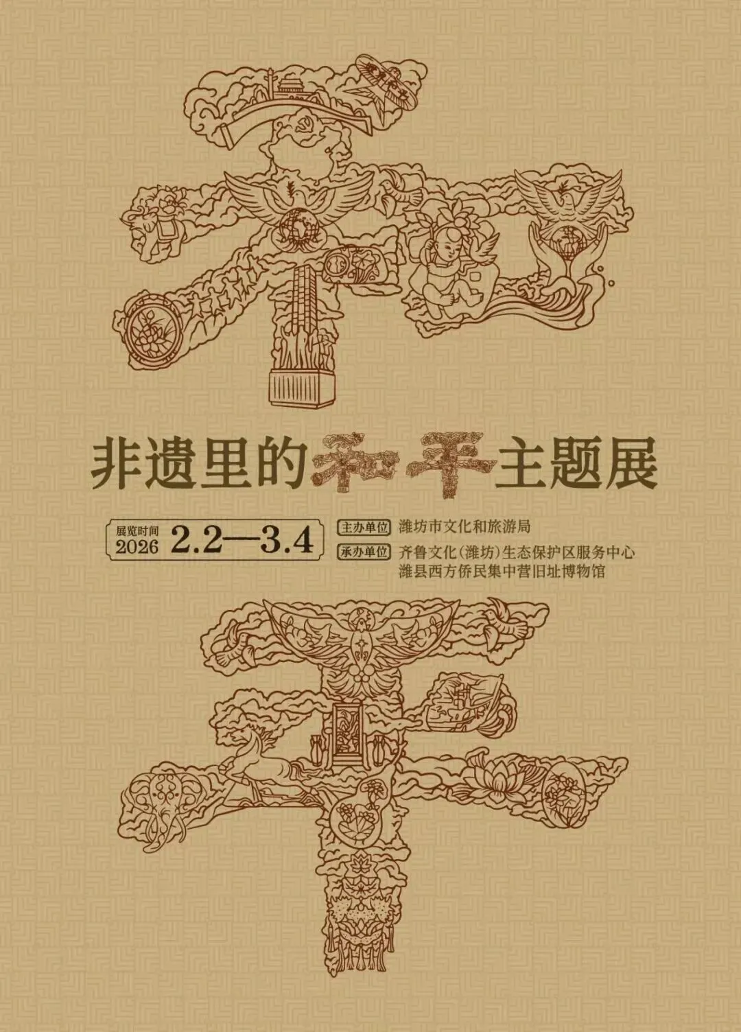 潍坊市非物质文化遗产馆的“非遗里的和平”主题展,汇集32位非遗代表性传承人的42件佳作,包含剪纸、年画、泥塑、核雕等多种形式,以匠心传递和平理念,展现潍坊非遗的人文底蕴与国际视野。
