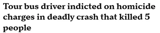 据CBS纽约2月14日报道 在纽约州西部一场致命旅游巴士车祸造成5人死亡六个多月后,检察官对巴士司机提起指控。