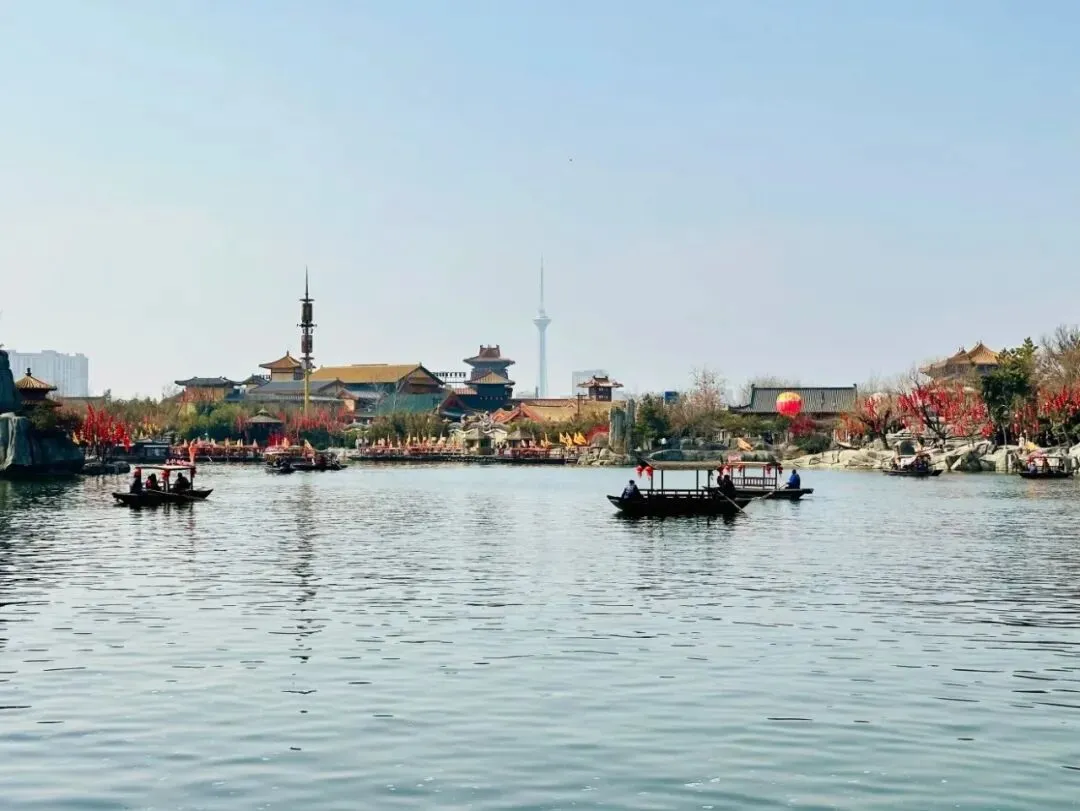 而且我们还能够在园内泛舟划船,体验古人眼中的汴梁城。