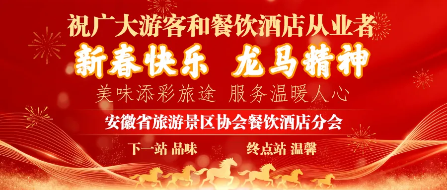 值此新春佳节、万象更新之际,安徽省旅游景区协会餐饮酒店分会谨向全体会员单位、业界伙伴及辛勤工作在一线的广大从业者,致以最诚挚的节日问候和最美好的新春祝福。