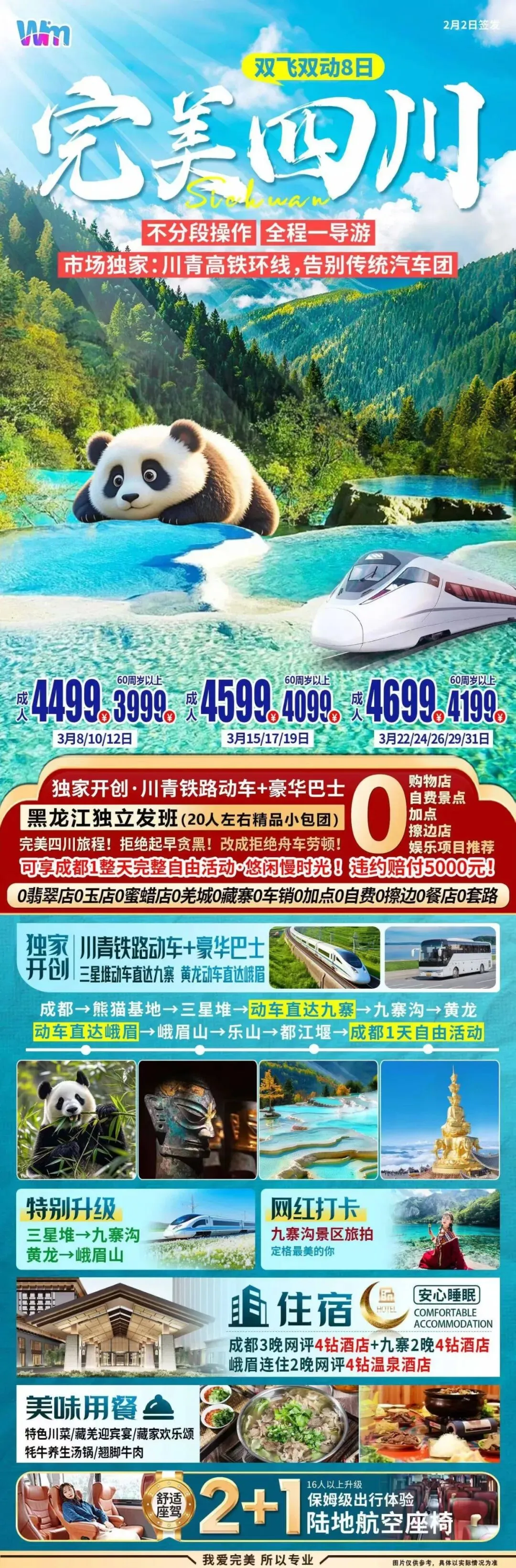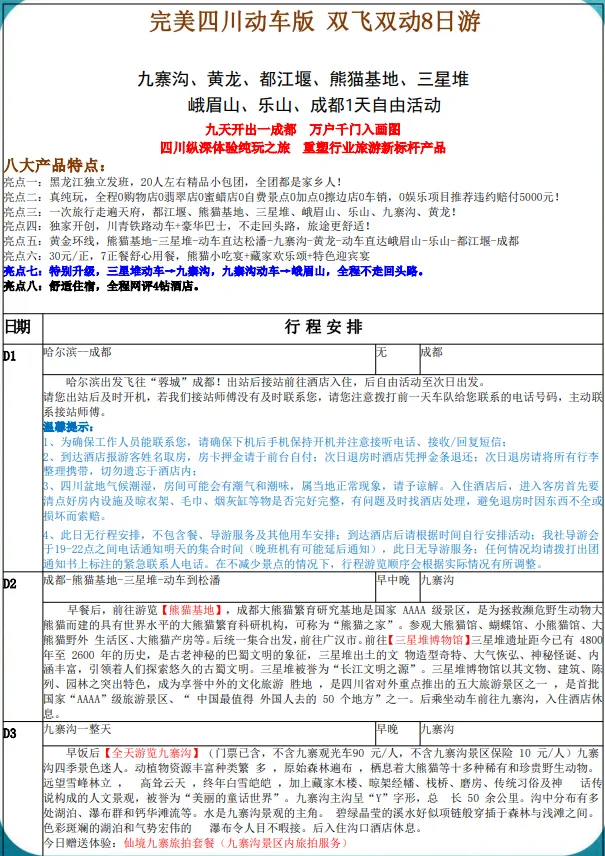 【肇东纵横旅游春季团】3月12日完美四川双飞8日游 黑龙江独立成团
