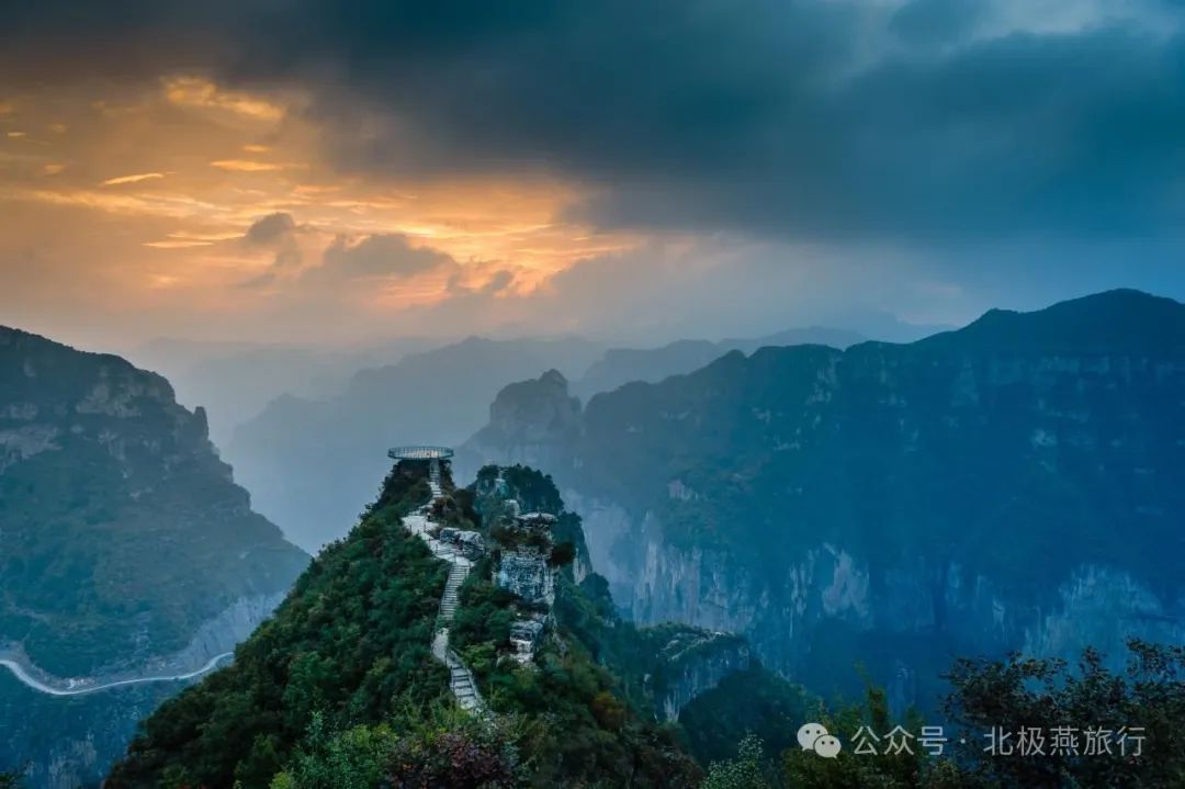 游客在天脊山游玩时,一定要去观音洞后面的绝壁栈道,这里,依靠着悬崖而建,落差300余米,走在这条栈道上,山中的美景一无遮拦。