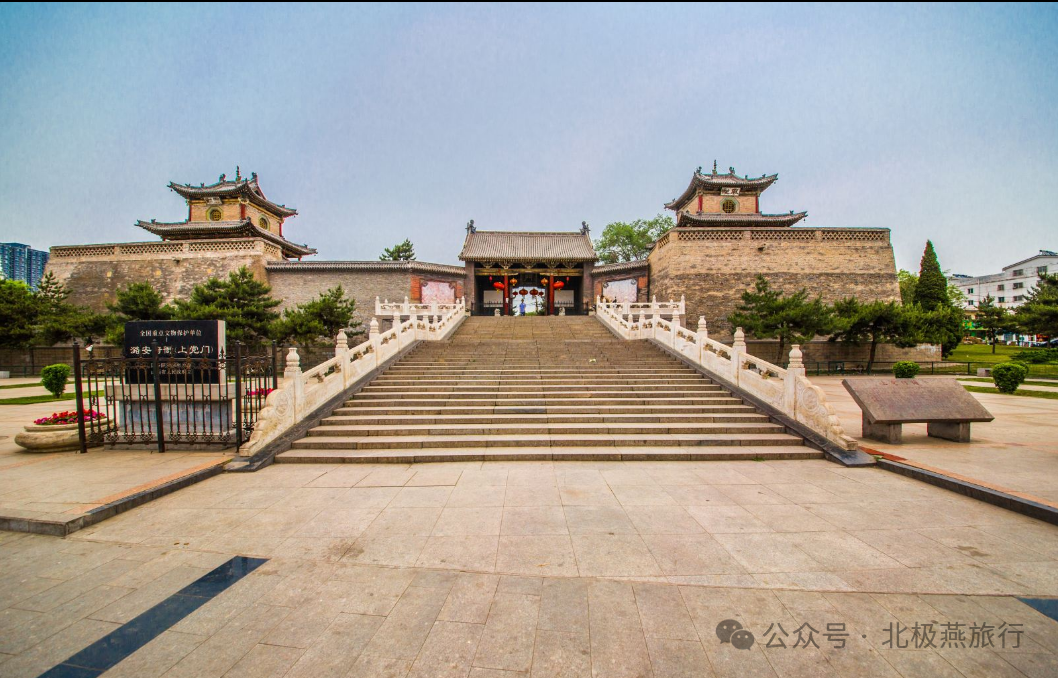 上党门位于长治市西大街的府坡街北端,是古上党郡署(后为潞安府府衙)的大门,现为长治的象征和标志。上党之称,殷商已有,秦置上党郡,郡署由长子县迁移至今长治市。上党门始建于隋开皇年间。唐玄宗李隆基任潞州别驾时,在衙署内大兴土木,增建飞龙宫、德风亭。兴盛时亭堂楼宫有280余间。金元之际毁于兵火。明洪武三年(1370)重建上党门门庭,后又增建钟鼓楼。
