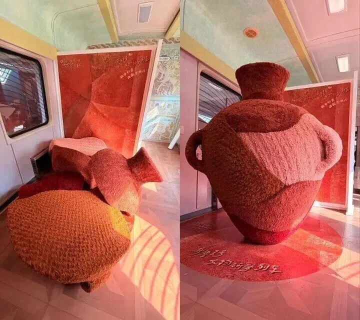 娱乐A车厢聚焦互动体验与文博科普,打造了一场沉浸式研学盛宴。车厢内设置了涂色游戏、文物森林、古今器物连连看等10余项寓教于乐的互动游戏,贴合旅客旅途碎片化时间特点,以轻松有趣的形式传递文物知识。同时,推出“集章贴纸寻宝”活动,实现列车与沿线博物馆的联动。车厢依托“豆包”等应用,将AI融入文博知识科普全过程,旅客通过“豆包”APP拍照、视频通话提问,即可获取文物专业解读,并支持连续追问,让学习更具互动性与趣味性。娱乐B车厢则融合会客与休闲功能,打造舒适惬意的交流休憩空间,实现“文物研学+休闲旅行”的深度融合。