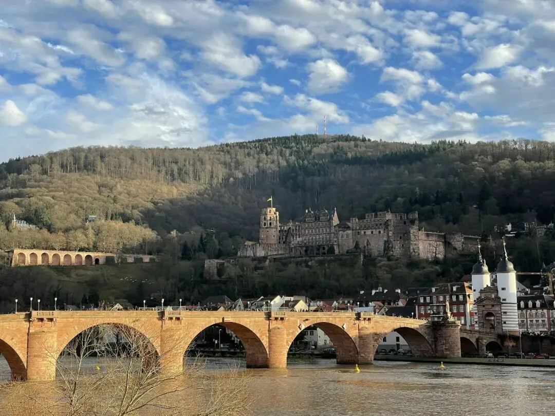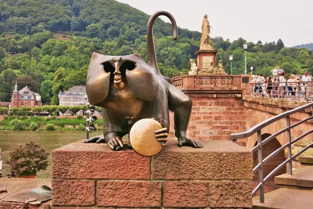 亮点:海德堡老桥(Alte Brücke)是这座大学城最具辨识度的地标之一,也是游客初到海德堡几乎都会走到的地方。这座横跨内卡河的红色石桥,连接着老城与河对岸,新老交汇的景象在这里一览无余。桥头的双塔门极具中世纪气息,而桥上的“桥猴”雕像则是人气打卡点,象征机智、讽刺与自省。