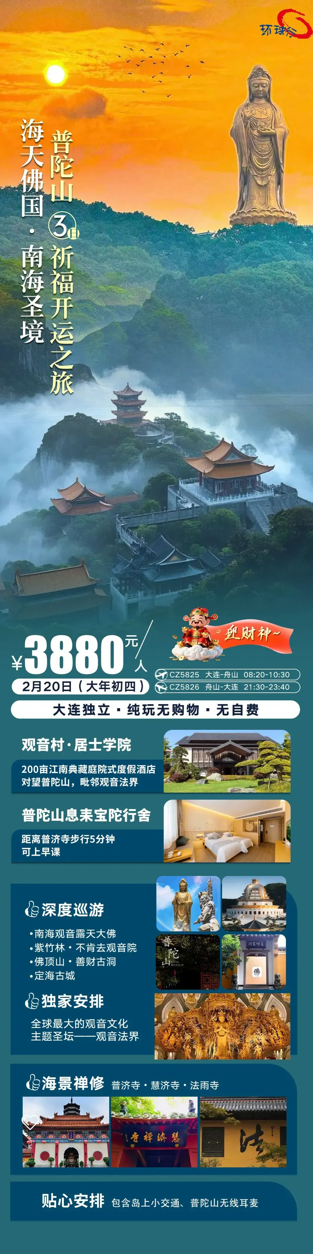 合集【春节旅游|汇总】初四~普陀山祈福!初七~成都乐山大佛!初十~大孤山祈福三日游!关东民俗轻奢三日!迪斯尼乐园!哈尔滨雪乡!