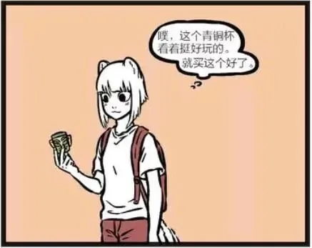 九月、烈烈和哪咤逛完了美食街,品尝了许多好吃的之后 去逛了博物馆。他们终于逛完了博物馆之后,就准备一起去看看纪念品,他们一起来到了纪念品专卖店门口。之后就进了这家店里面,忽然九月发现了一个青铜杯,九月说:噗,这个青铜杯看着就挺好玩的,就买这个好了。
