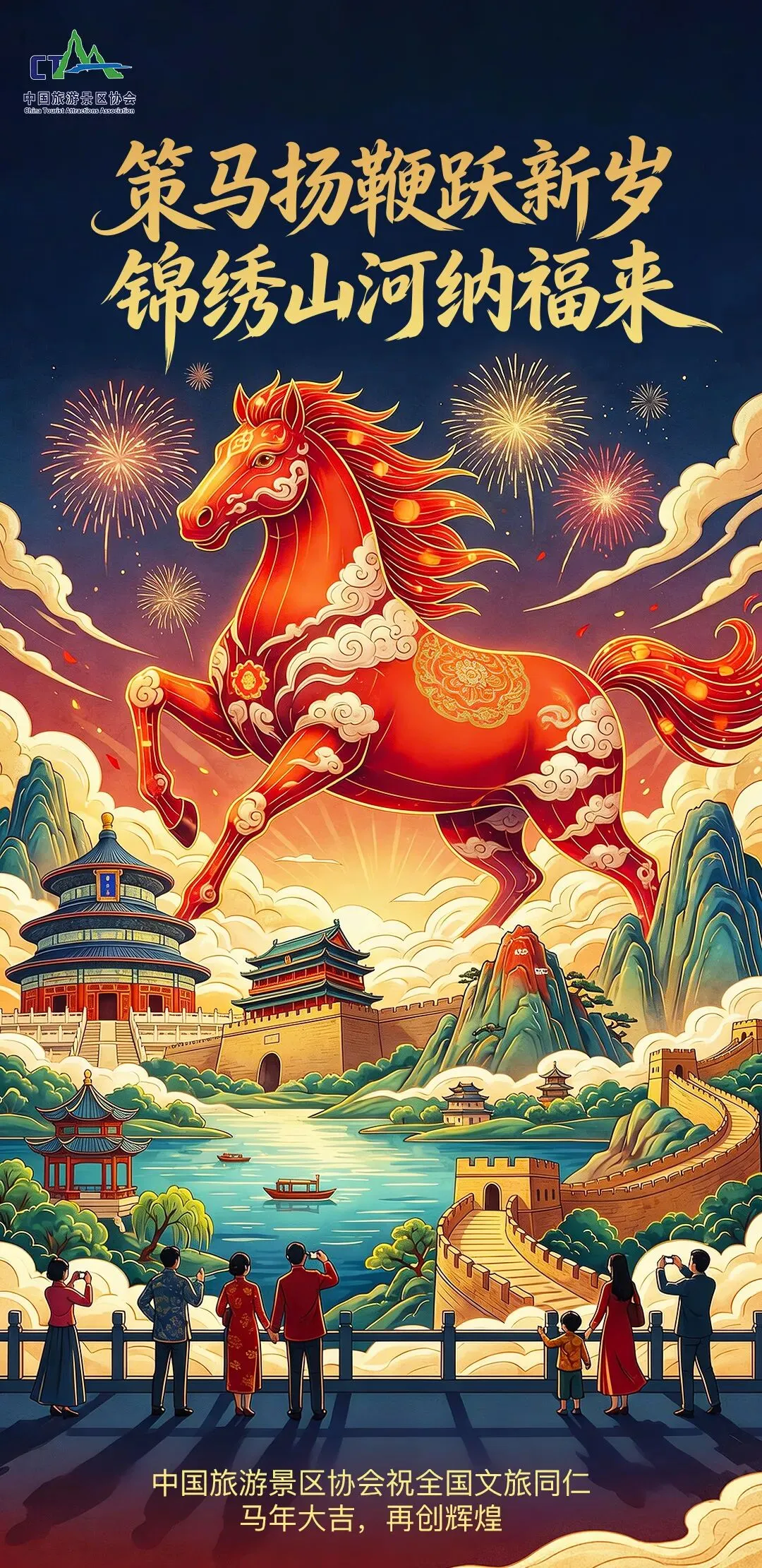 当丙午马年的钟声即将敲响,神州大地处处张灯结彩,年味渐浓。值此辞旧迎新的美好时刻,中国旅游景区协会谨向长期以来关心、支持景区行业发展的各级领导、业界同仁,向全体会员单位,以及奋战在文旅一线的工作者们,致以最诚挚的新春问候和最美好的节日祝福!