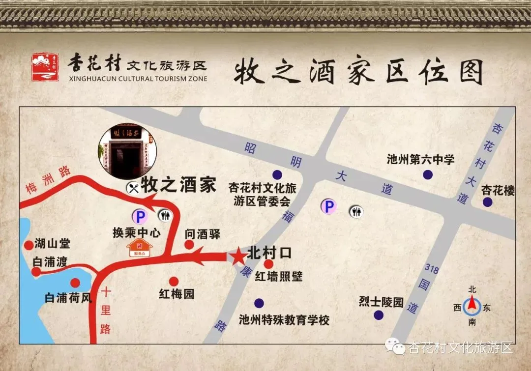 自驾路线:导航至“池州杏花村文化旅游区”即可到达