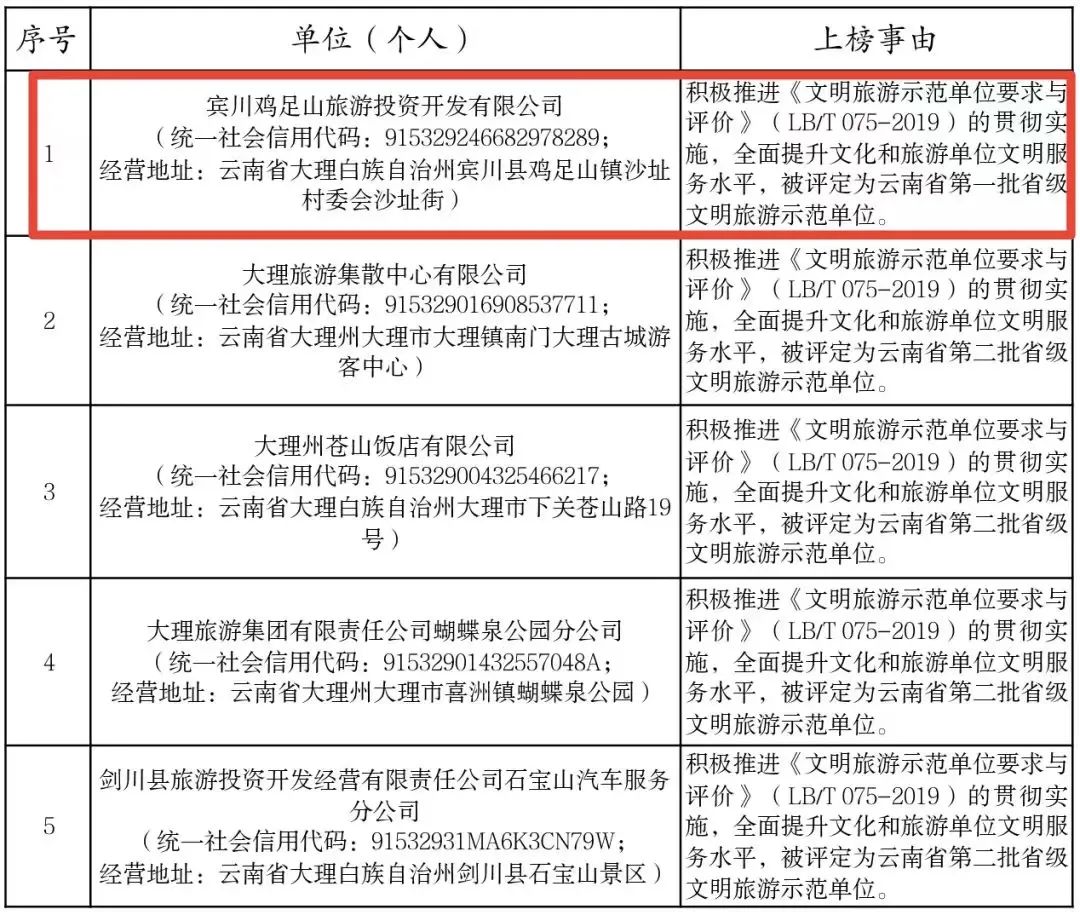 宾川鸡足山旅游投资开发有限公司上榜“红榜”!2024年度第1期大理州文化和旅游“红黑榜”名单公布
