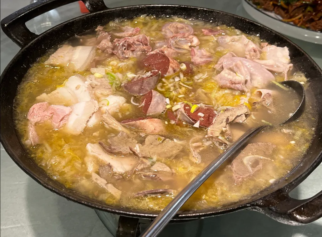 听着锅里“咕嘟咕嘟”的声儿,年味就上来了。一头猪吃出百般花样,五花肉肥而不腻,血肠顺滑鲜嫩,酸菜吸足了肉汤的醇厚,脆生生又酸溜溜,一碗下肚,从胃暖到心。再配一碟蒜泥,就着香喷喷的黑龙江大米饭,任谁都忍不住大快朵颐。这哪是一道菜啊,分明是盛在碗里的“团圆”二字。