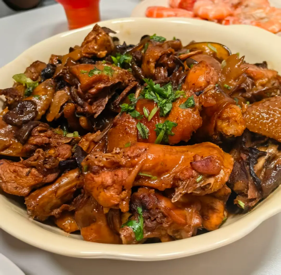 东北野生榛蘑,和乡村笨鸡经过小火慢炖,使其牢牢锁住汤底精华,每块鸡肉都均匀吸收了榛蘑的鲜味,夹一块鸡肉,嫩滑不柴!舀一勺汤汁,浇在米饭上,地道东北味儿!
