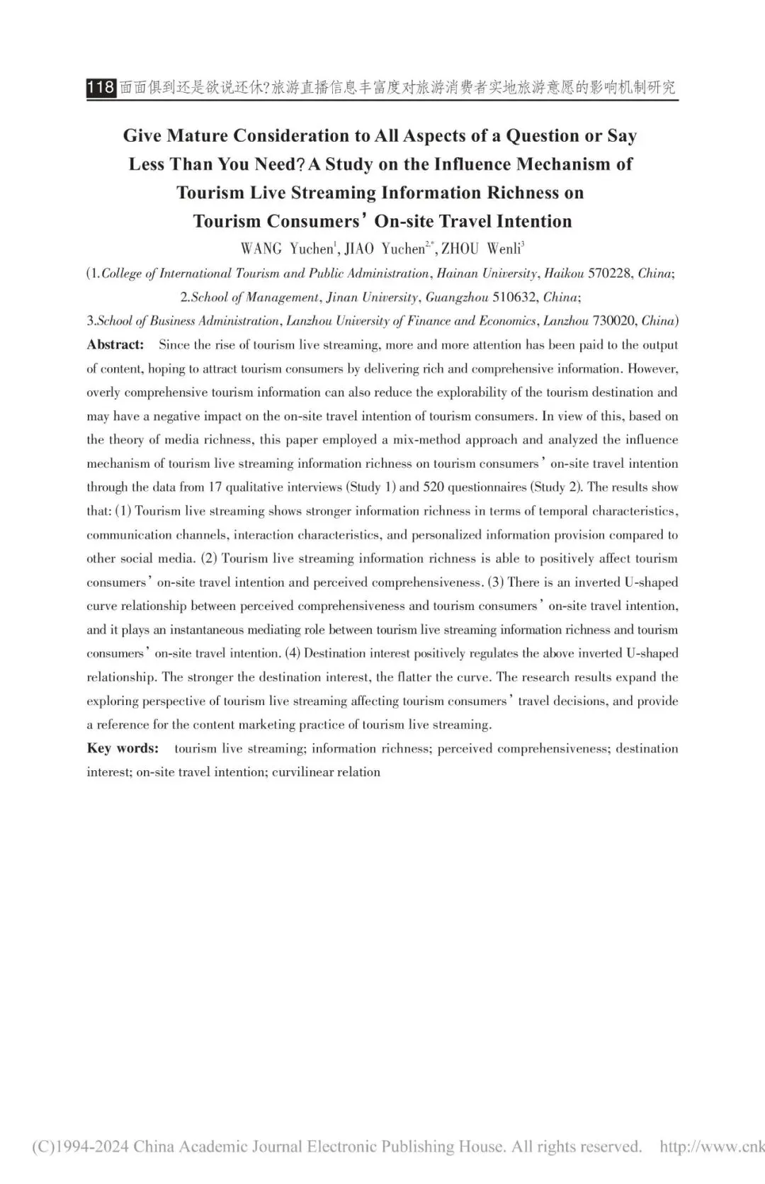 您现在的位置是:首页 > 国内旅游目的推荐 > 正文 国内旅游目的推荐 面面俱到还是欲说还休?旅游直播信息丰富度对旅游消费者实地旅游意愿的影响机制研究 admin2026年02月16日 09:26:55国内旅游目的推荐8 面面俱到还是欲说还休?旅游直播信息丰富度对旅游消费者实地旅游意愿的影响机制研究 转载请说明来源于"旅荐网",部分内容转载自网络,如有侵权请联系qlwl@foxmail.com删除 本文地址:https://www.15386.cn/post/109606.html 上一篇 马年迎新春,情暖自遊小镇|汽车乐园主题景区给您拜年了~ 下一篇 不挤网红景点!春节去这3个冷门小城,便宜好玩,现在就出发! 相关文章 #组队旅行小队 #旅行计划分享 #尼泊尔旅行 十五五规划热词翻译(旅游与文化类) 旅行手账完全指南 新加坡旅游超全避坑指南|避开罚款+必备好物+消费陷阱+交通套路 研学旅游指导师证2026年都有哪几个部门颁发的有?该如何选择? 外籍来华旅游签证(L签证)办理攻略 最新 | 旅行实用攻略汇总:护照、签证、机票、租车及其他 直接抄️J人做的桂林阳朔旅游攻略太牛了 浙东旅行攻略 广东广州旅行攻略+实用TIPS 发表评论 取消回复 评论列表 这篇文章还没有收到评论,赶紧来抢沙发吧~