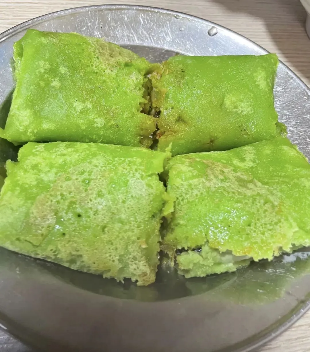 泰宁碧玉卷:韭菜汁加米浆,热锅上摊成饼、再卷馅料,满满韭菜清香。