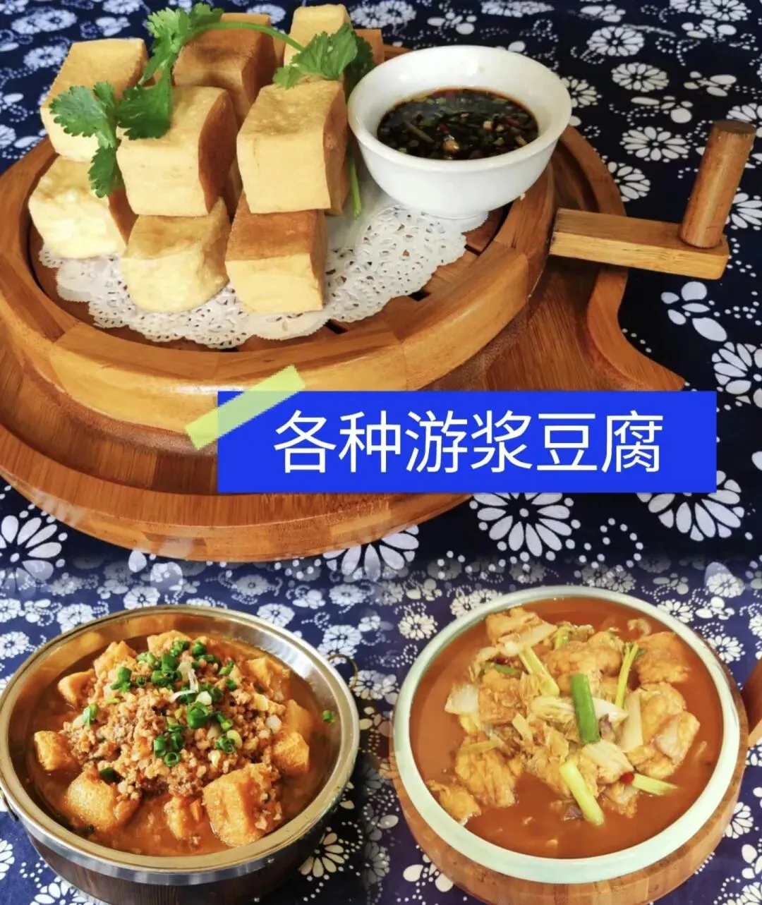 游浆豆腐:外皮酥脆,内里非常嫩,再配上蘸料或酱汁,口感层次丰富。