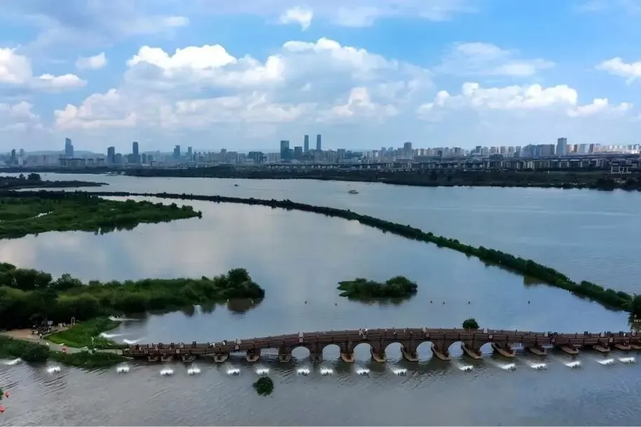 自驾导航“捞渔河国家湿地公园”,环湖东路沿途风景优美,市区出发约40分钟车程,园区内有专属停车场(收费)。