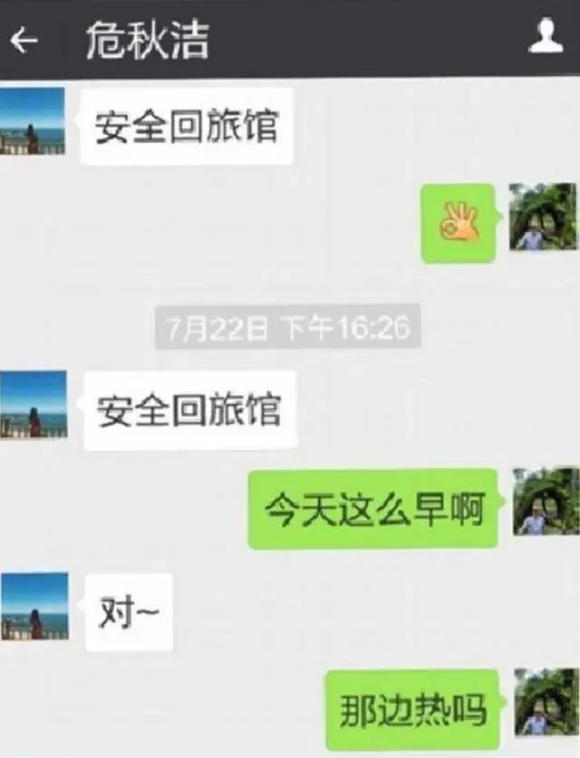 危秋洁给家人的告别信中,从没有提到弟弟,由此可见,父母长期重男轻女,即使回到旅馆,给父母报平安,也就是简单几个字,可能也不愿和父母有过多的交流。