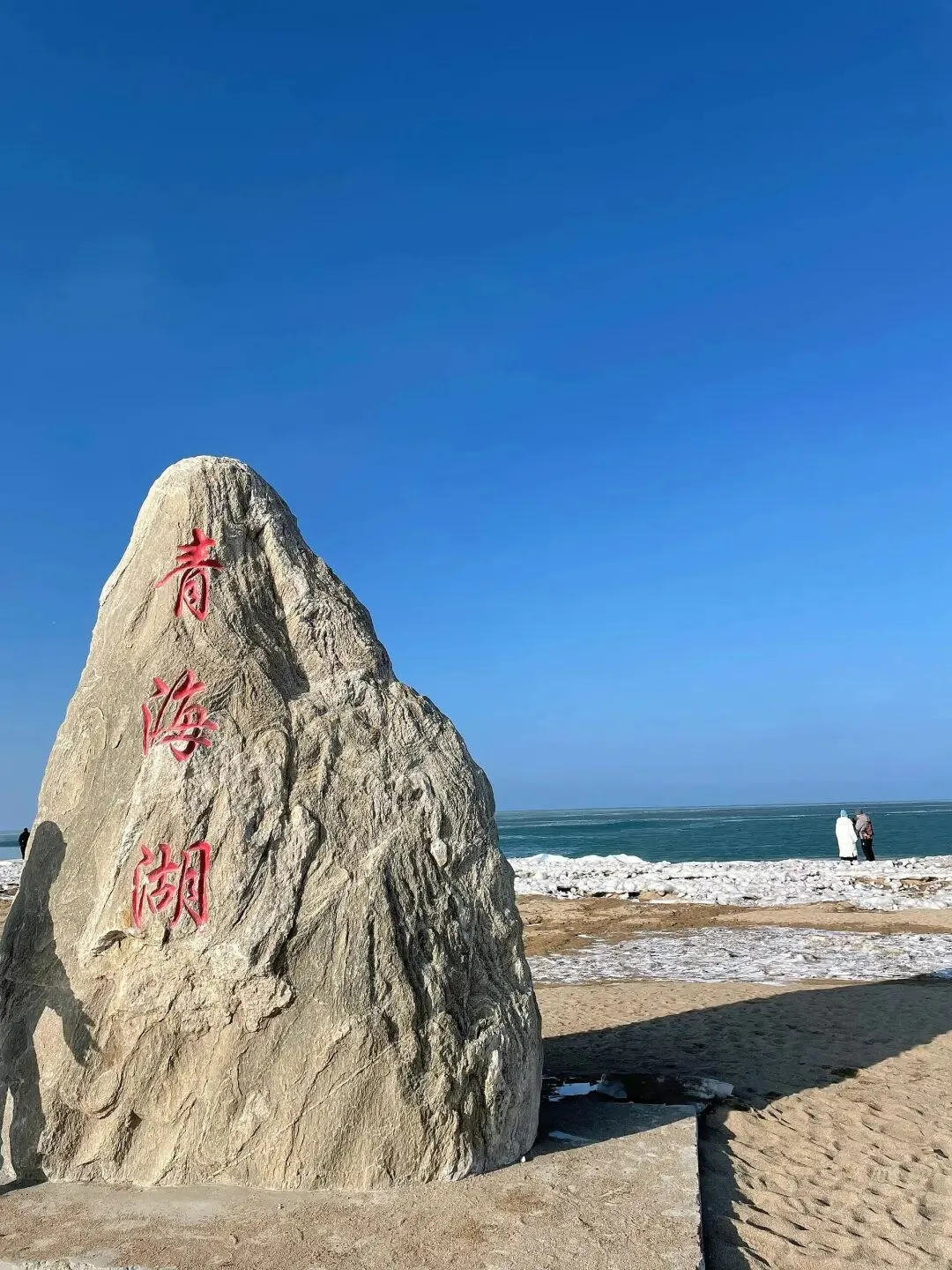 淡季的青海湖完全是另一种模样!湖面结起厚厚的冰,像一块巨大的蓝色宝石冻住,踩在冰面上(注意安全!)拍照,清冷感十足,随便凹造型都出片~
