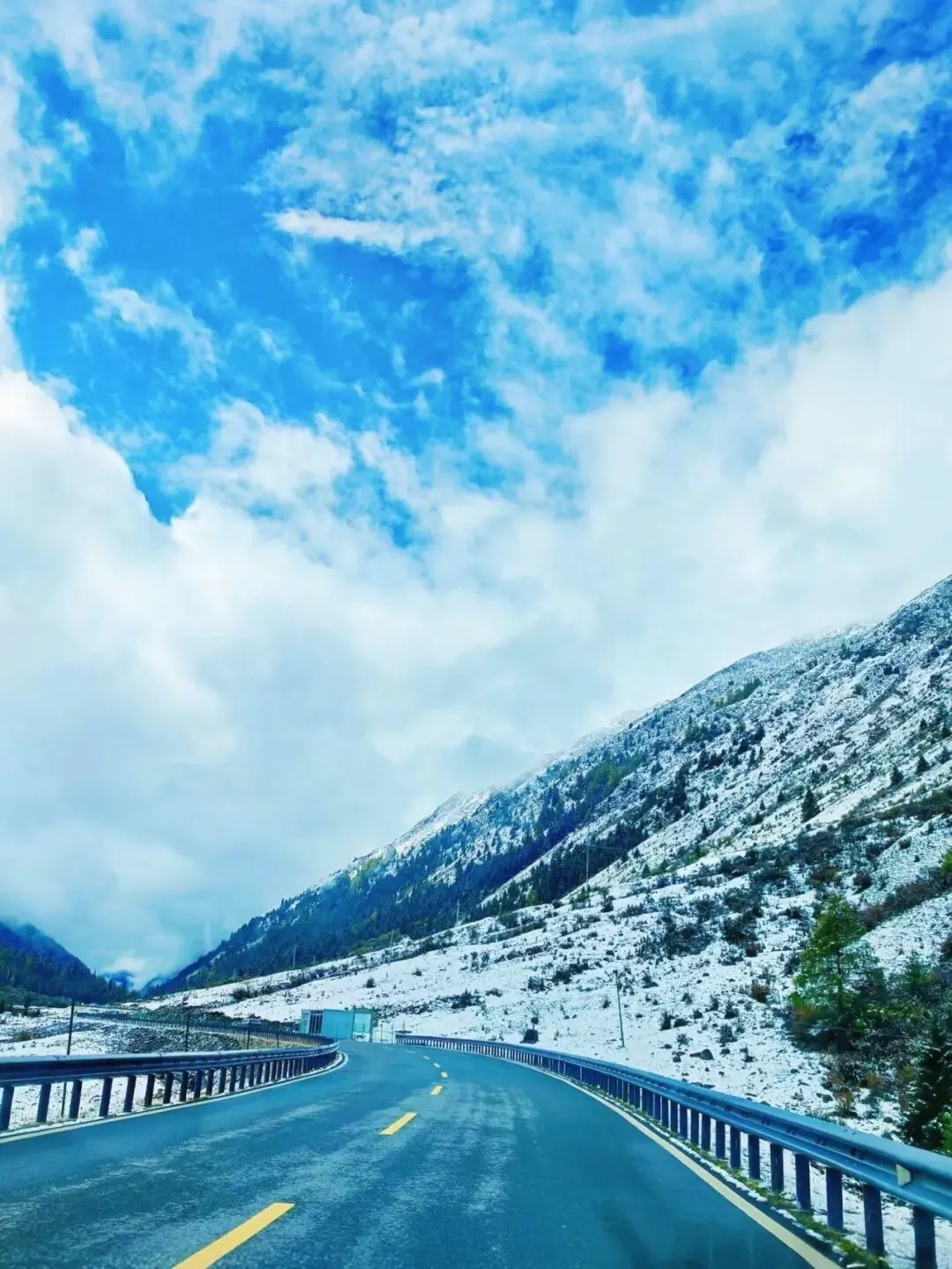 就在雷神王瀑布停车场旁边!笔直的公路延伸向远方,背后是巍峨雪山,构图超有延伸感,站在路边随便一站,不用刻意摆姿势,就是一张自带电影感的大片,穿亮色衣服拍照反差感拉满。