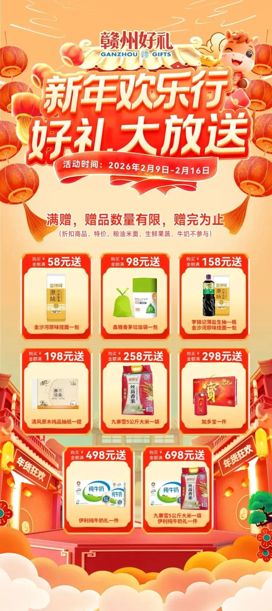 2026 年新春佳节将至,赣州好礼携满满诚意,重磅开启「新年欢乐行 好礼大放送」活动,用实实在在的福利,陪你解锁红火年味!