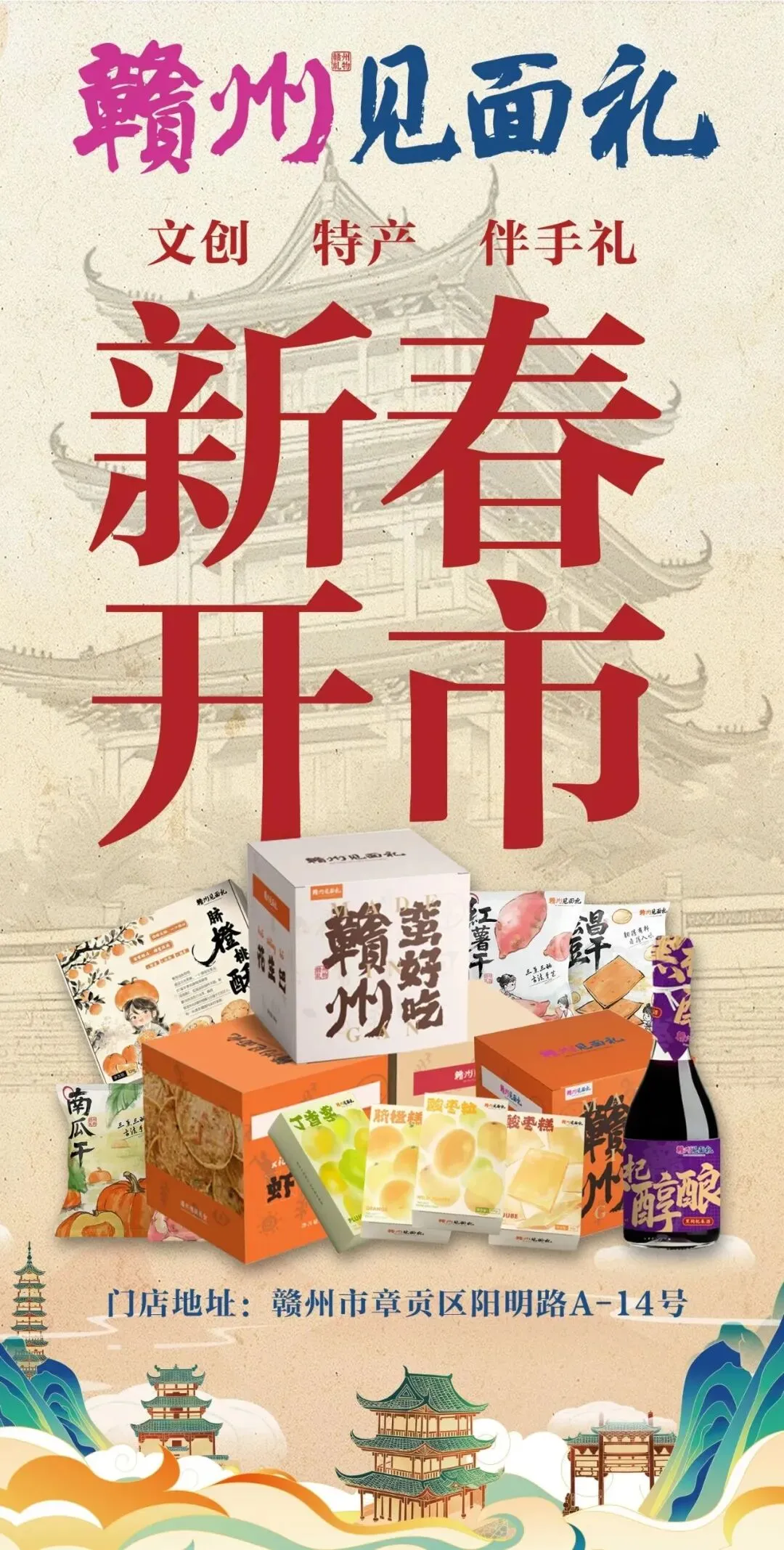 年味,藏在走亲访友的步履里,也藏在一份用心准备的见面礼中。文产集团旗下赣州见面礼新春开市,深耕本土的文创巧思,传承百年的赣南特产,每一款都揉进了赣州的山水人文,每一口都裹着家乡的烟火气息,不必远寻,在阳明路 A-14 号赣州见面礼店,就能把赣州的底蕴与新春的喜气,一并打包赠予亲友,新岁启封 礼待八方!