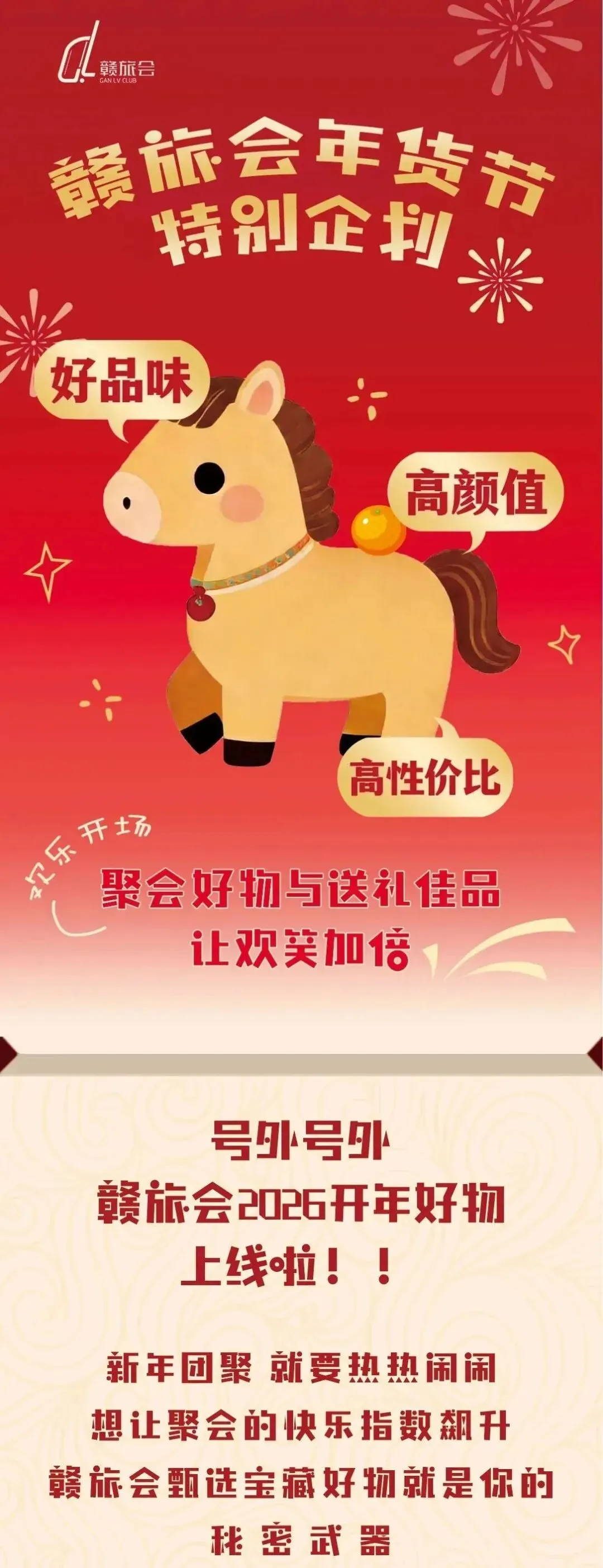 骏马踏春至,福暖赣州城!2026马年新春,「云游赣州」特举办新春专属抢购活动,回馈广大市民及游客支持,0.01元抢好礼,邀您共庆佳节、解锁马年好彩头!