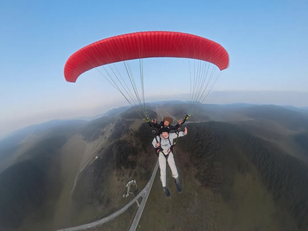 此外,春节期间,武隆景区还在仙女山大草原为大家准备了滑翔伞体验项目。