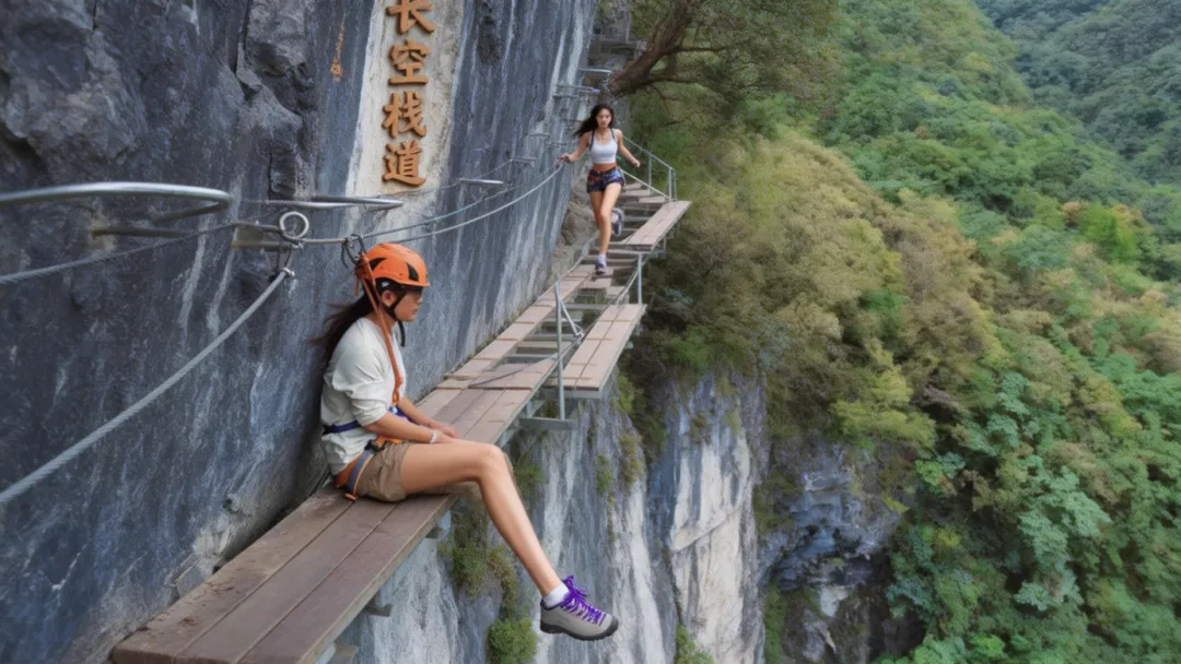 ❹云崖决胜・一跃成名,挑战白马山长空栈道极速赛道,勇者用脚步丈量勇气的高度。