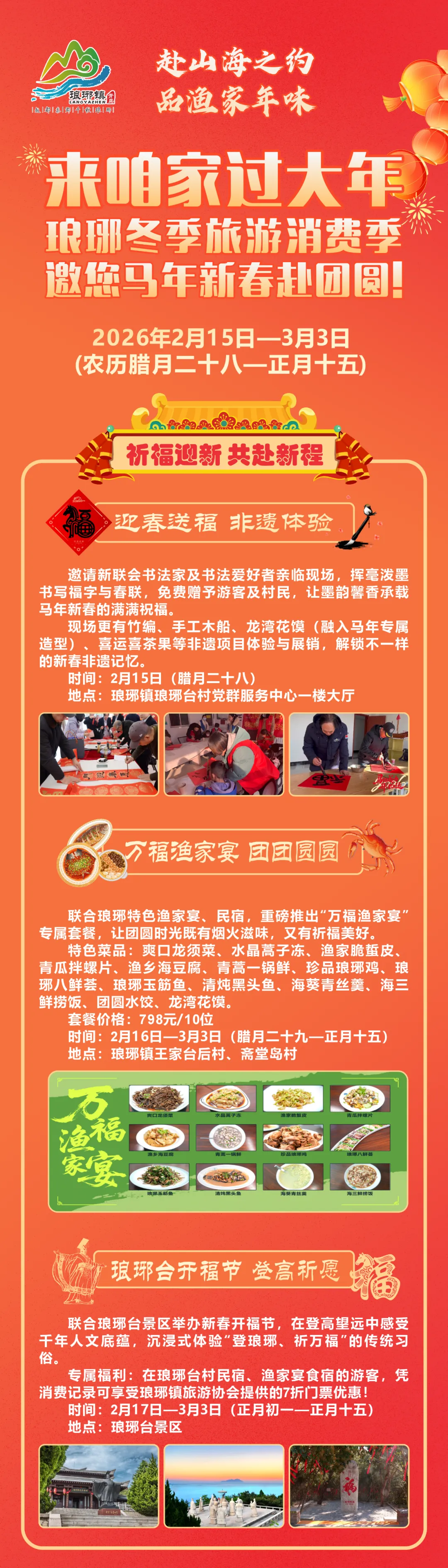 新年的脚步渐近,我们诚挚地向您发出家的邀请——“来咱家过大年”。这里不仅有穿越千年的山海故事、渔火点点的静谧浪漫,更有实实在在的暖心优惠,邀您轻松融入这片土地最真挚的节日氛围。