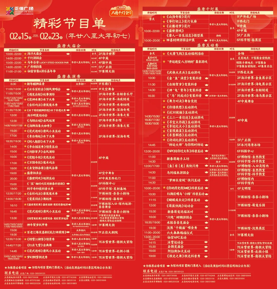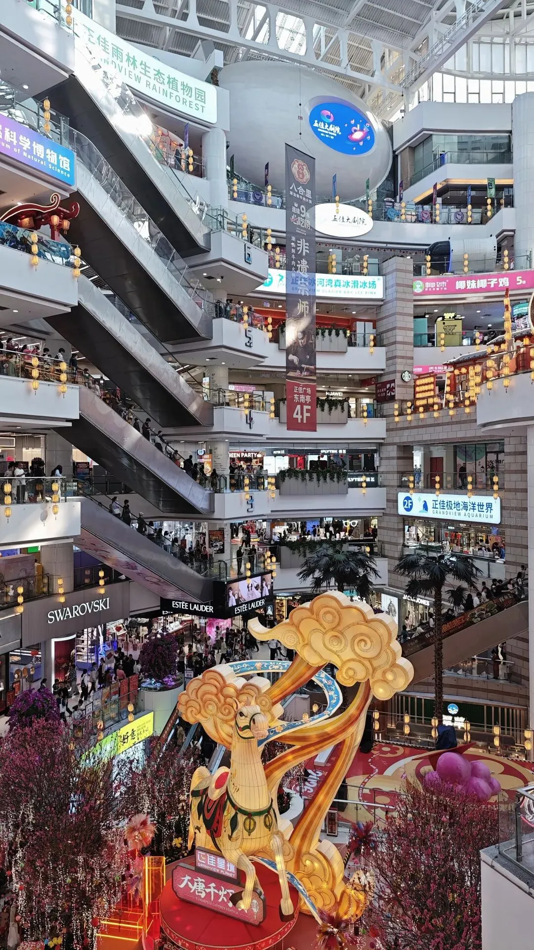 于是昨天,不信邪的我俩起了个大早,特地跑到广州各大商业+各大花市踩点,打算重新规划带爸妈出门的路线。 再之后,我们就目睹了开头那几幕传奇画面。 那么这一天下来,我们都看到了啥?广州春节各大热门地点,现在又是个啥情况? 01、正佳广场 先说正佳广场吧,因为这里消费平靓正,满减力度很高,再加上现场举办大唐千灯会,整个商场都充满了快乐的气息。