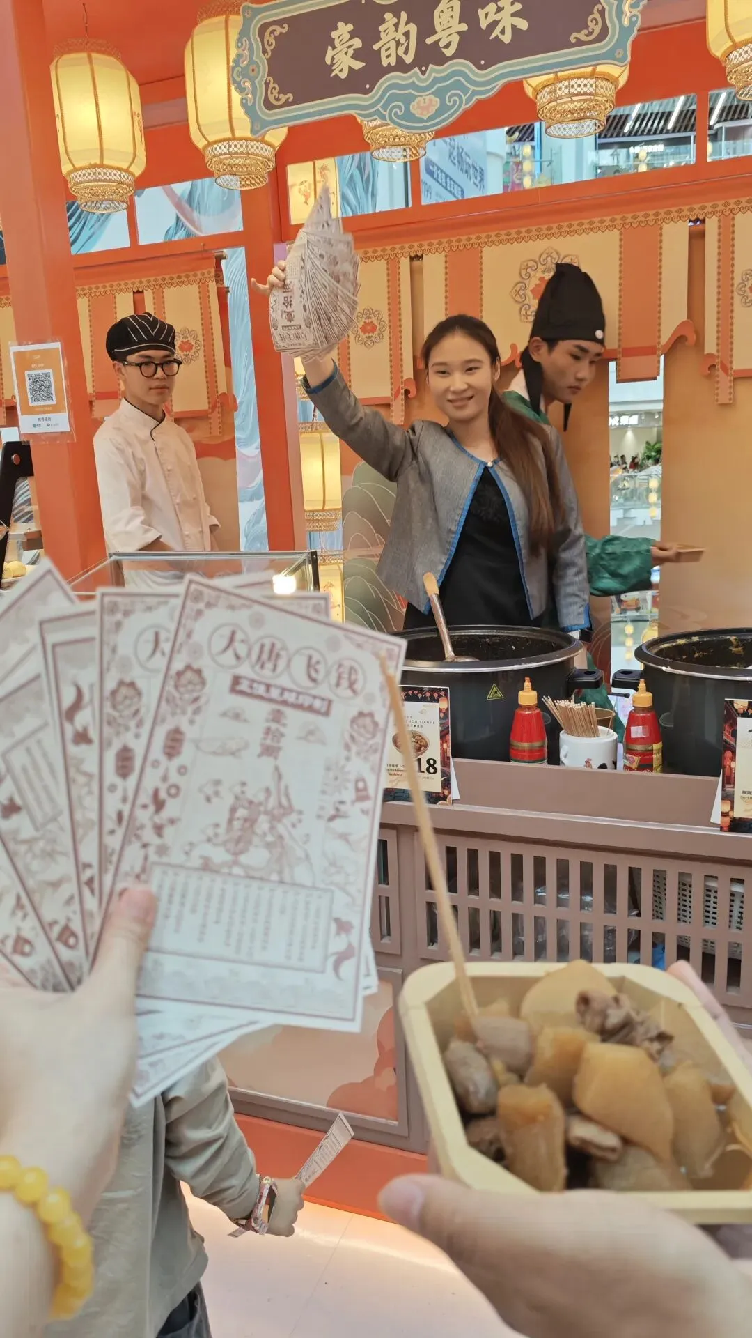 再举个例子,你平时出门不喜欢花钱是不是? 可正佳的小姐姐对你扭还对你笑耶!买牛杂还送抽奖券耶!!