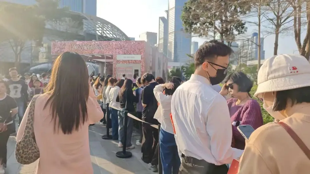 然后,天环广场很多店铺都在做活动,就比如YSL,只要扫码关注官方微信就能领一份明星体验礼,现场直接排长龙。 还有苹果手机店,现在每台体验机前面都站着好几个人,就是这么壮观且离谱!