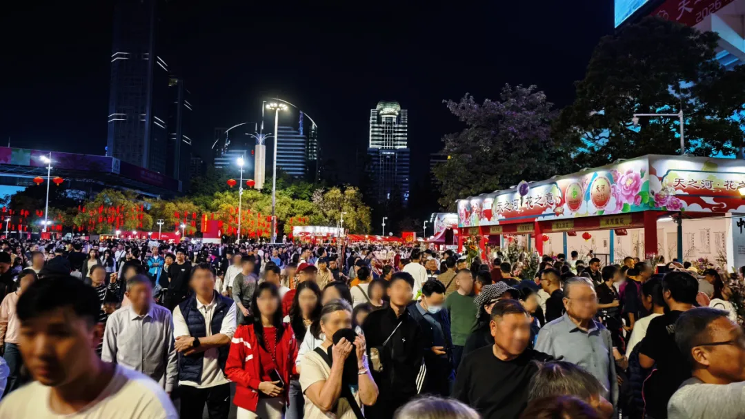 天河花市下午6点 丨 天河花市晚上8点 好了,最后用一张图,来总结今年广州各大花市、各大商圈、各大景点吧。 那就是……一张满面飘红的人气图