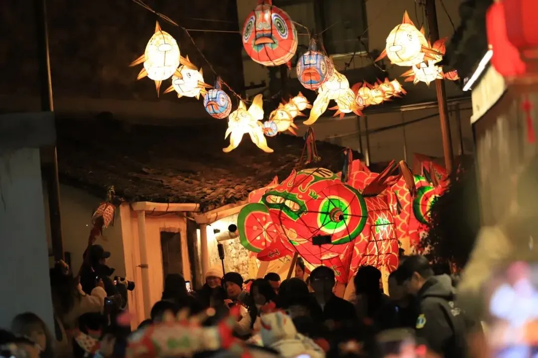 春节来杭州能看到呈坎同款鱼灯巡游了!看表演者手持璀璨鱼灯,模拟鱼群在水中穿游,或摆尾、或翻滚,祈求年年有余,风调雨顺。
