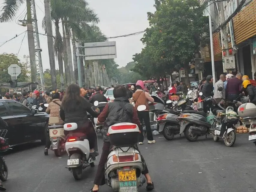 市场的人气太旺了,路上都是行人和摩托车,小车根本过不了。
