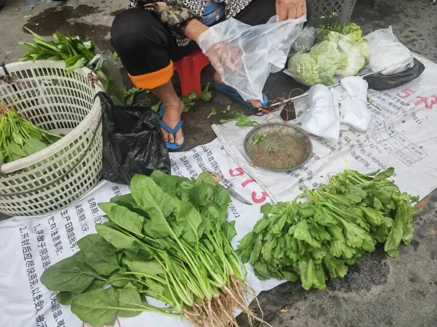 地摊,青菜看起来很有吸引力,可惜自己的已经太多,没法买点。