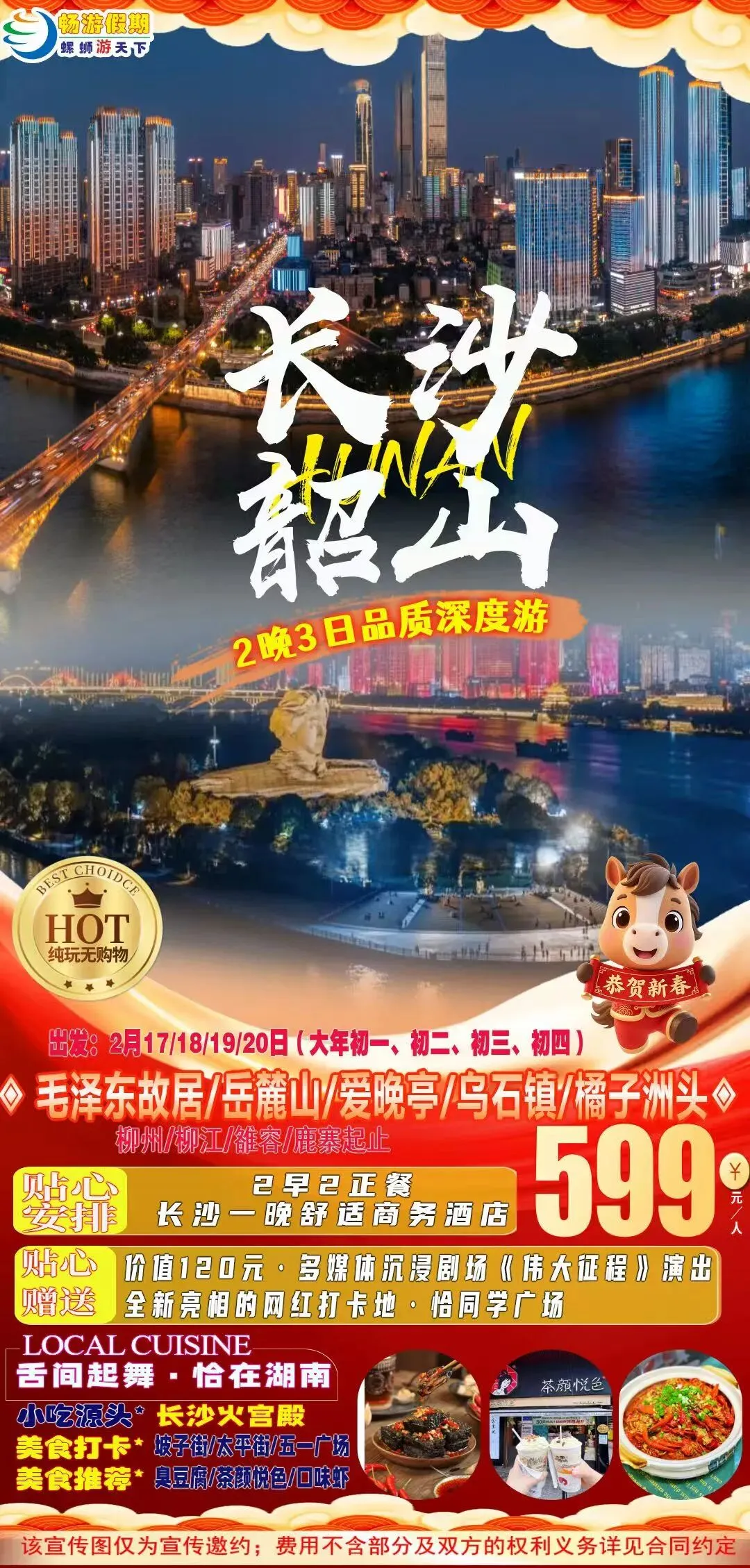 2月19日(已经成团,有位)韶山毛主席故居、长沙橘子洲头、乌石镇纯玩三日游599元/人