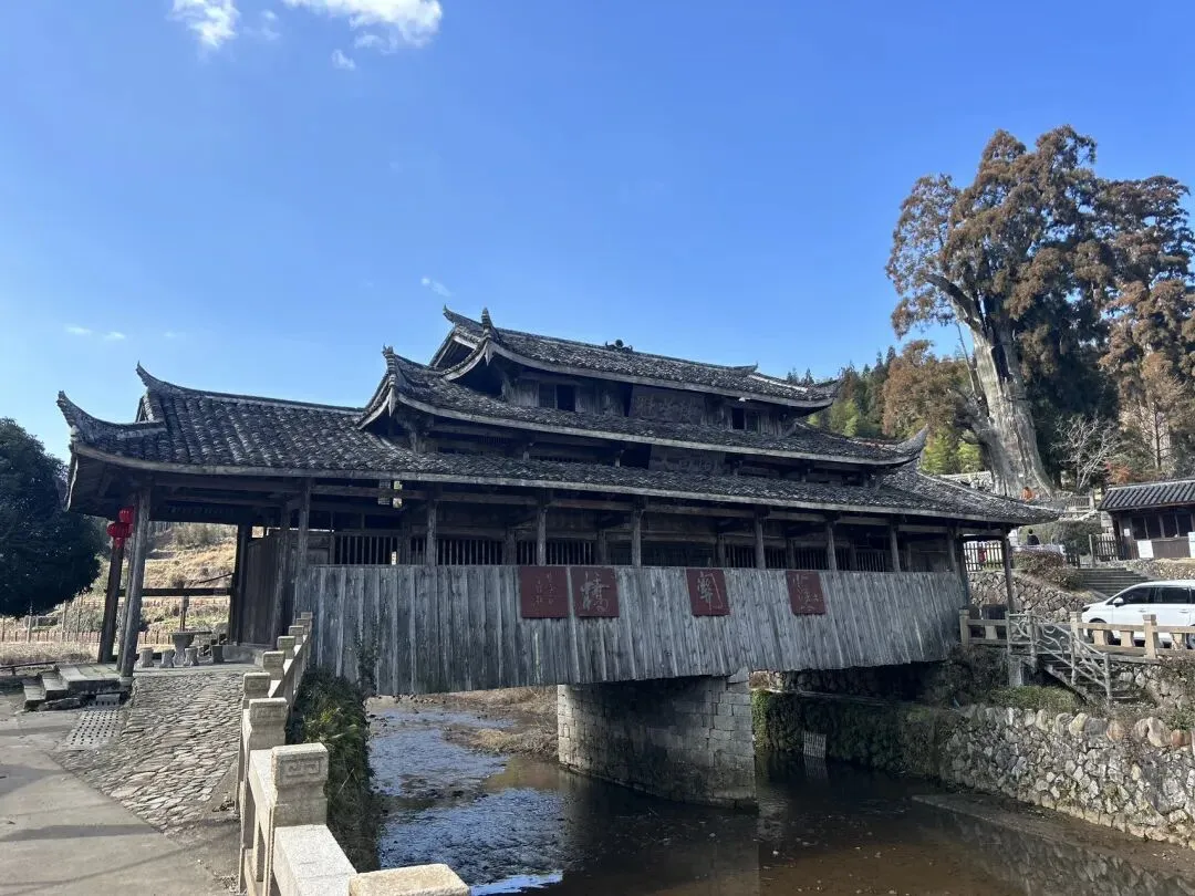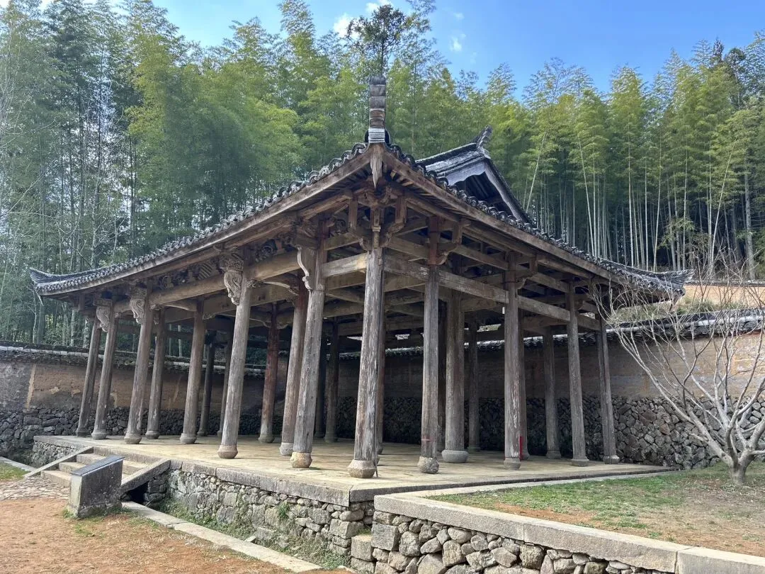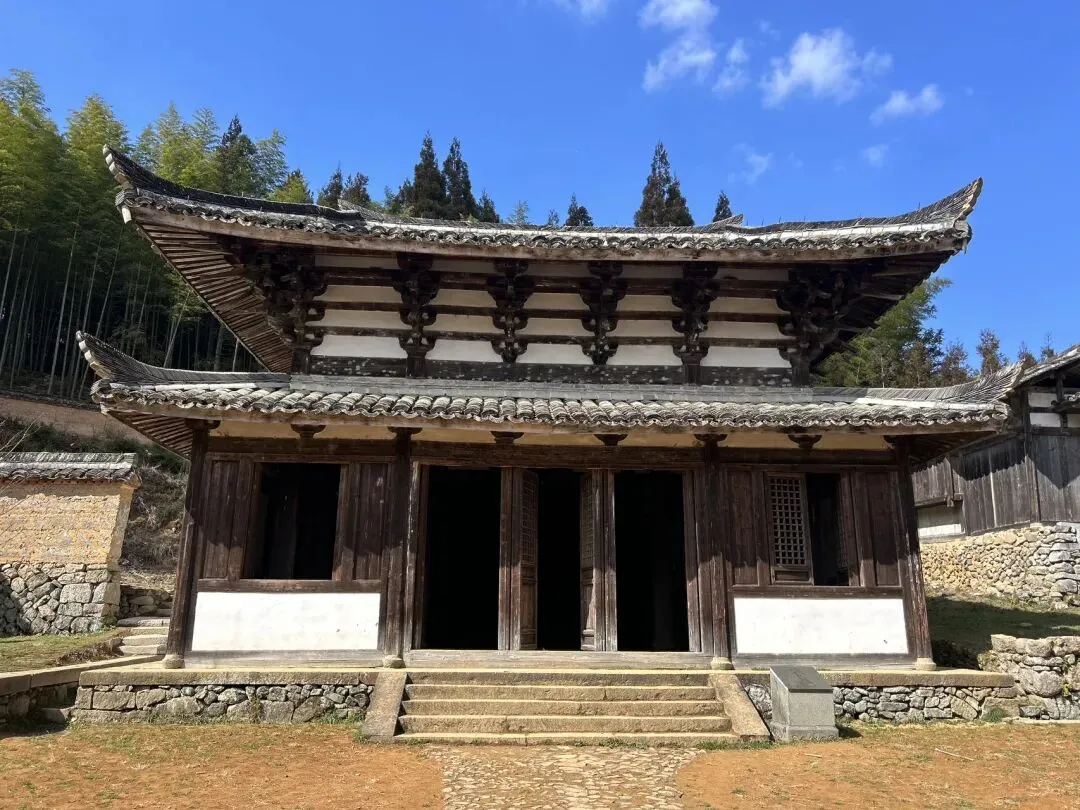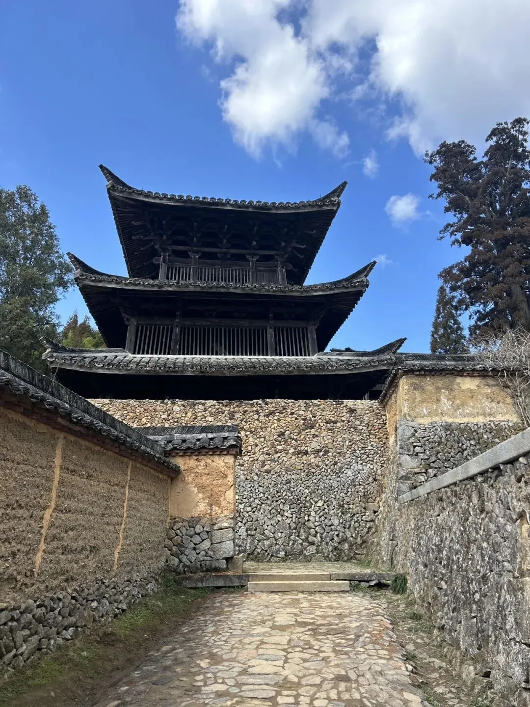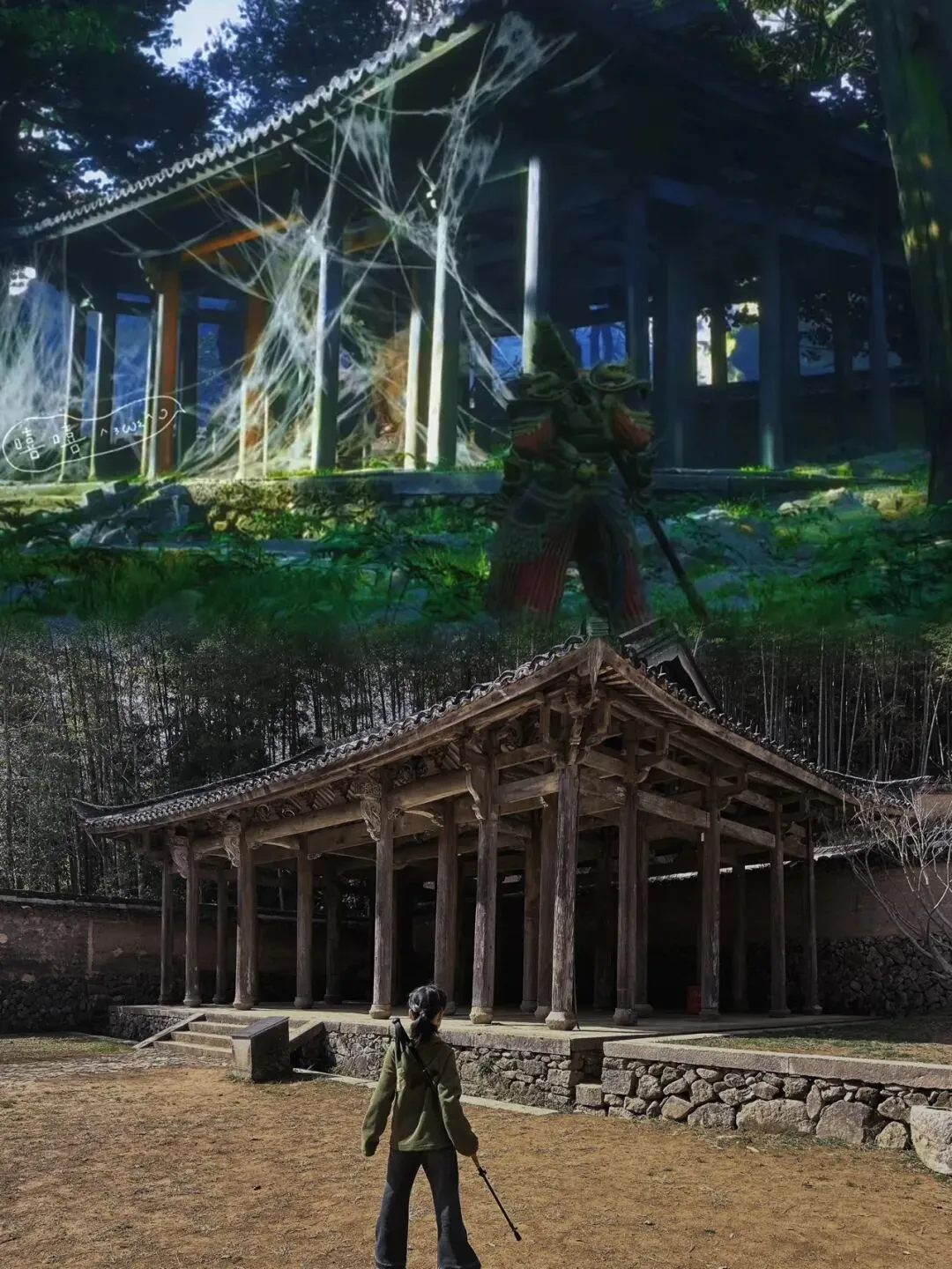 走过这座护安桥,时思寺就在山中。它是一整片建筑群,有建于宋绍兴十年的时思寺、明清建造的梅氏宗祠等古建筑群,寺旁有千年柳杉,也是游戏黑悟空的取景地。