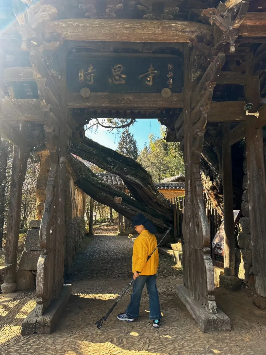 两个孩子在院子里追逐,脚步声在石板地上嗒嗒地响,惊起一只晒太阳的猫,懒懒地看了我们一眼,又垂下了眼帘。不知为何,我想起寺名里的“时思”二字——时光在这里,大约也常常会停下来想一想罢。