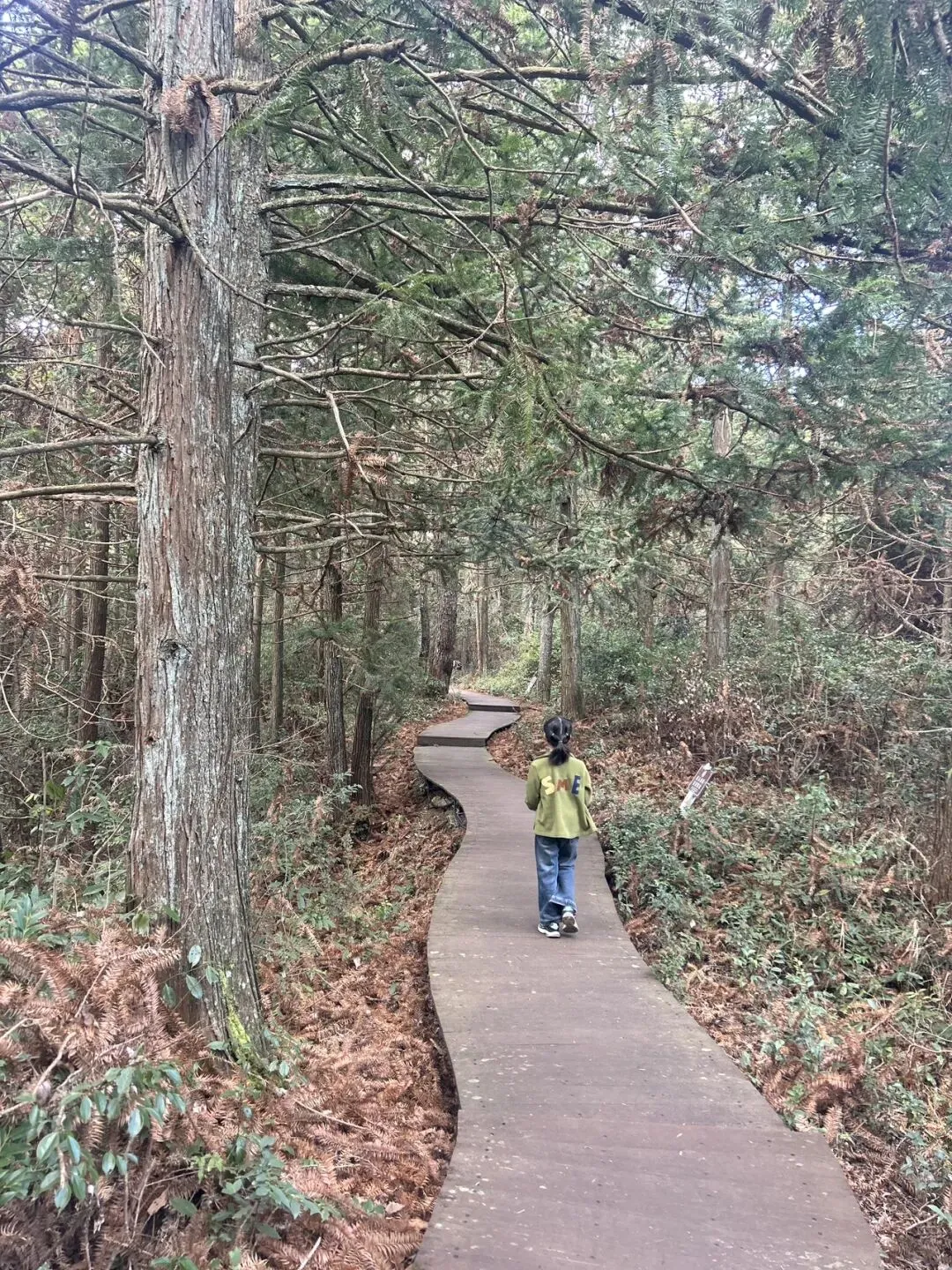 这条线路是一个小环线,因而我们没有原路返回,选择沿着提示继续前行。接下来这段路对于恐慌的我来说,着实困难。两个小孩边取笑边鼓励我。