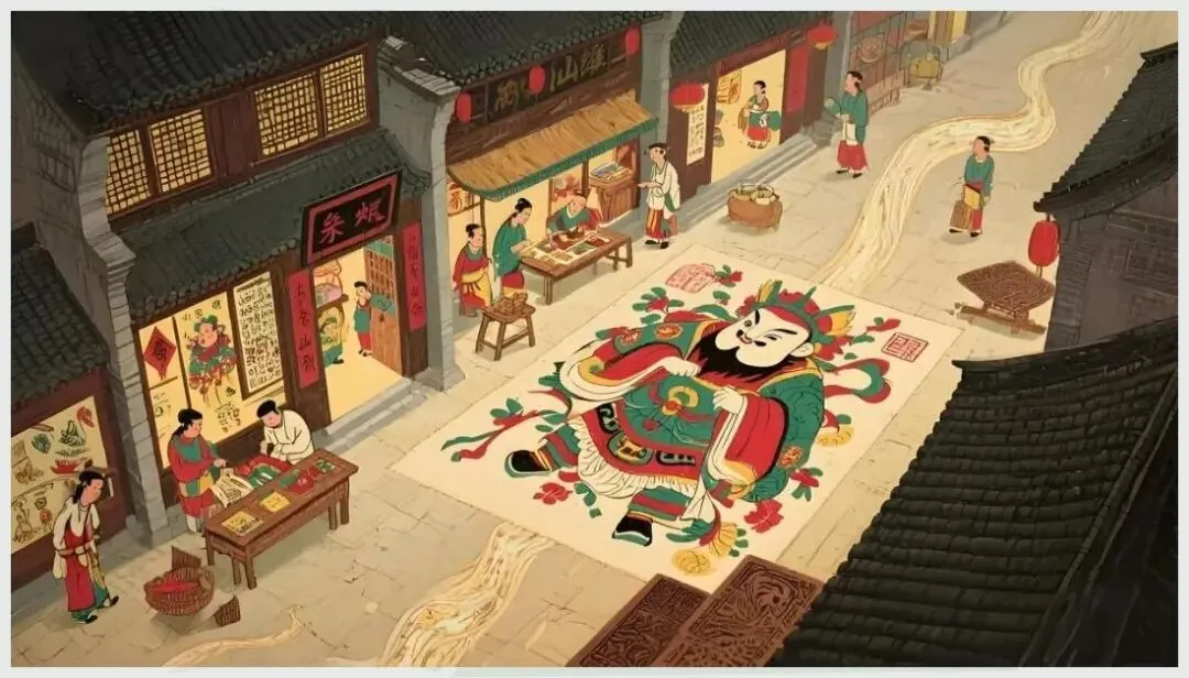 日本游客买了一张门神,卷起来小心放进包里,好像怕折了颜色。他们说,日本的浮世绘就是从这里学的,现在回来看看源头。我摸了摸指缝里的红,好像沾了一点朱仙镇的魂。