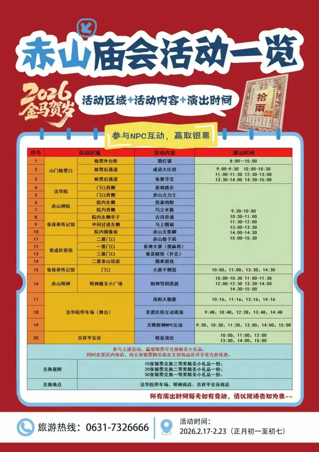 · 庙会全程: 正月初一至正月十五(2026年2月17日 - 3月3日)