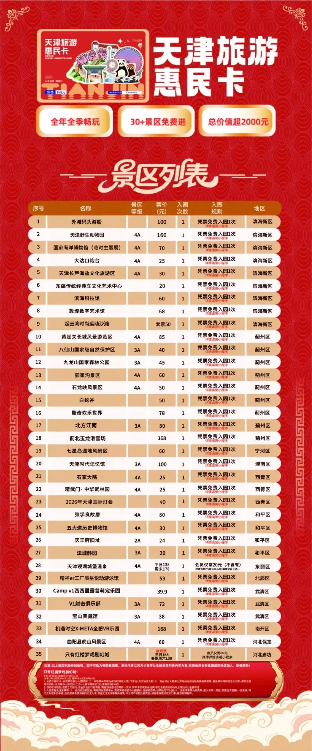 一卡畅游天津30+景区场馆