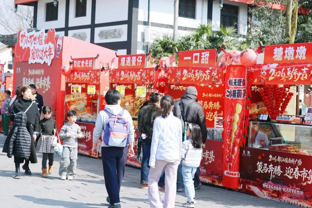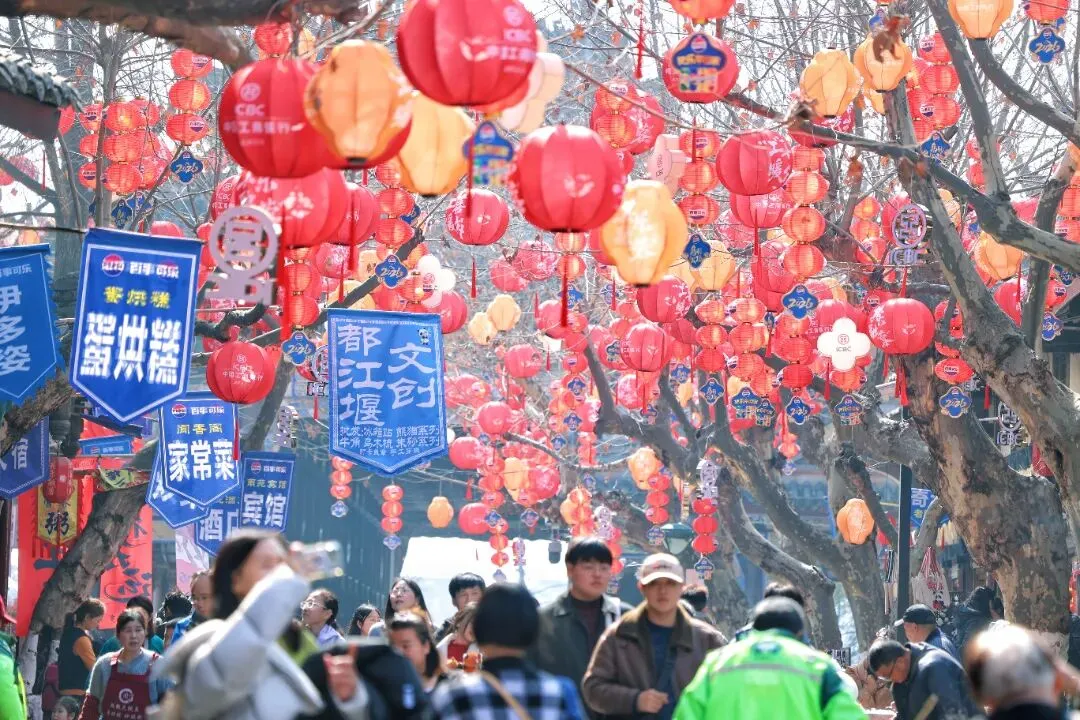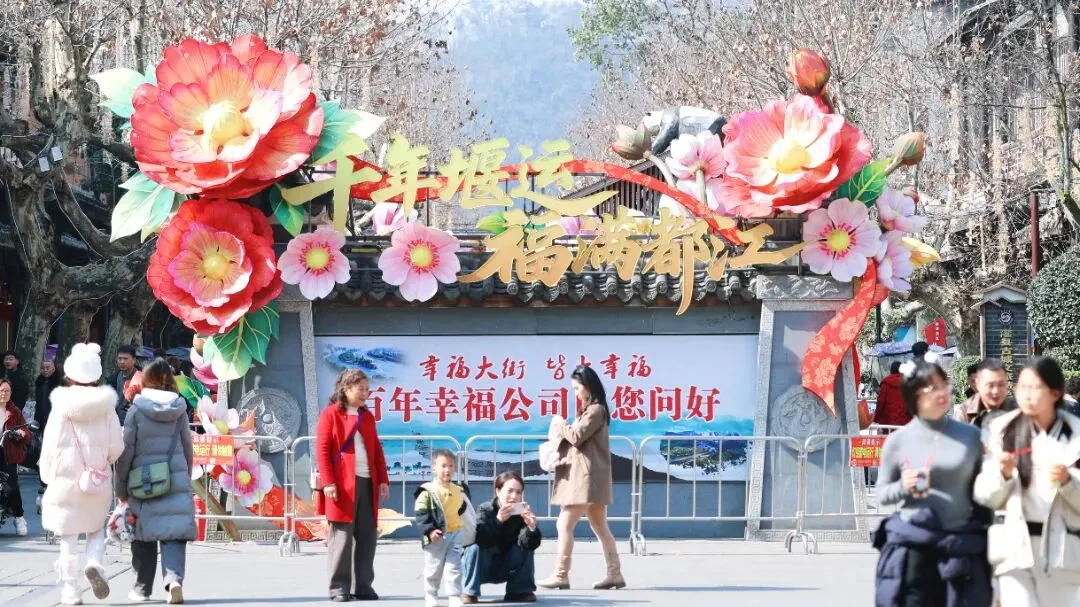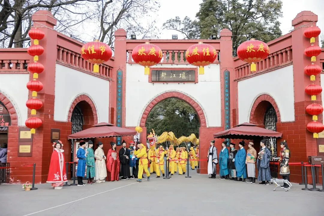 大红灯笼高高挂,张灯结彩迎新年。都江堰景区早已铺展起新年里的第一抹红,处处皆围绕着浓浓年味与融融暖意。